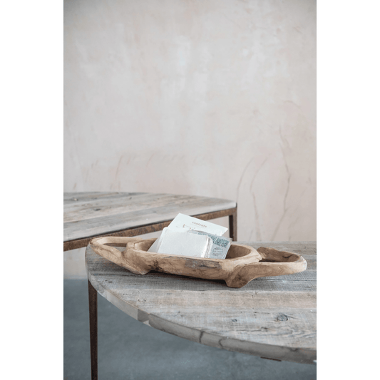 Decorative Hand-Carved Teakwood Tray with Handles