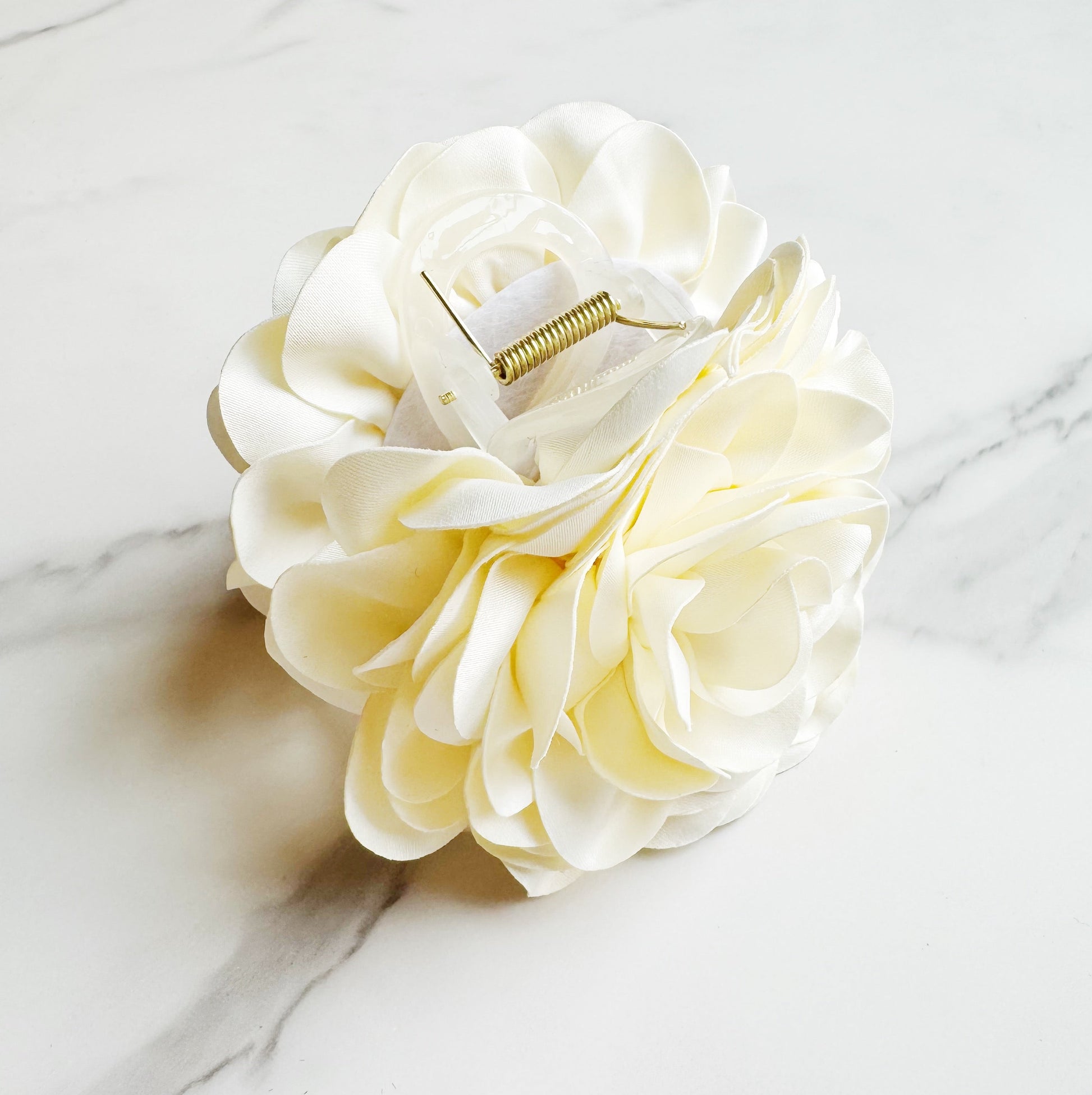 This Blooming Claw Clip features a delicately bloomed flower design and a convenient double-sided design. With a medium capacity, it securely holds hair in place while also creating a stunning look.
