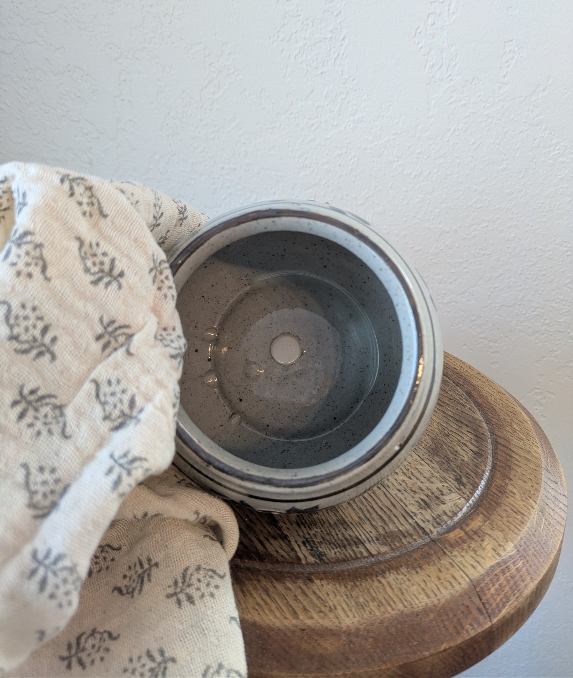 - Handmade Note: The drainage hole is a touch off-center. Glaze drip details inside.