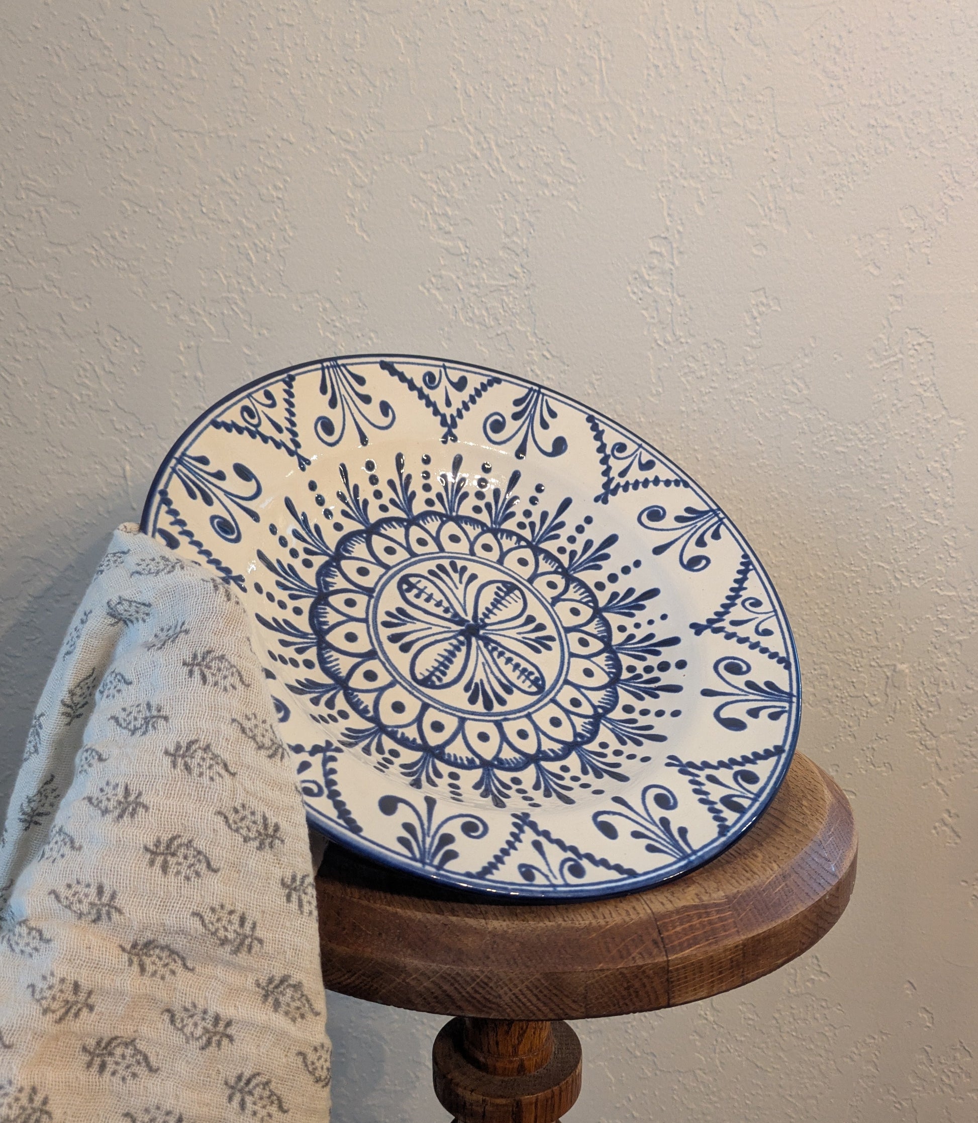 Handmade white and cobalt Hungarian motif with artist signature