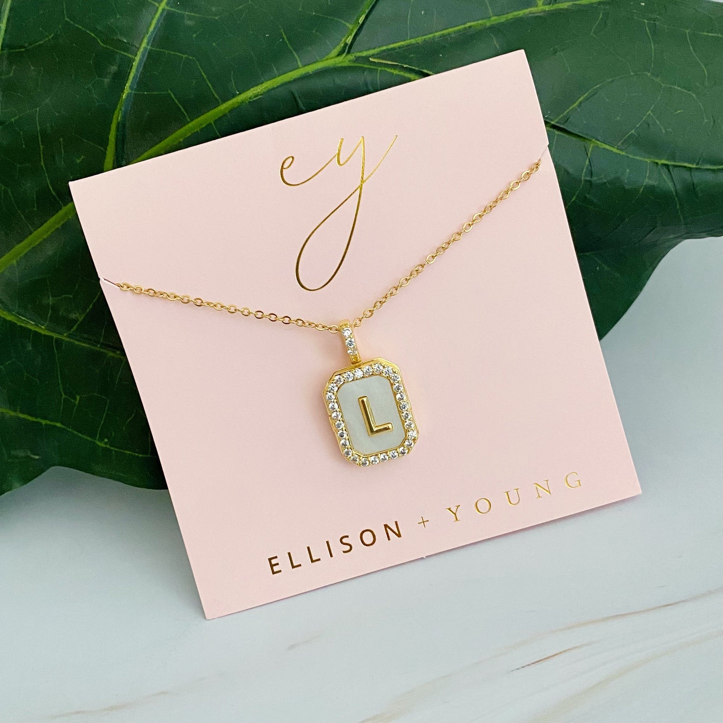 This initial art deco style locket pendant necklace makes a sophisticated statement with its delightful design. Meticulously crafted with mother of pearl, it features just the right amount of sparkle and a clean font for the initial. Its octagon shape adds another touch of luxury, while the locket opens and closes smoothly. An ideal way to personalize your look.