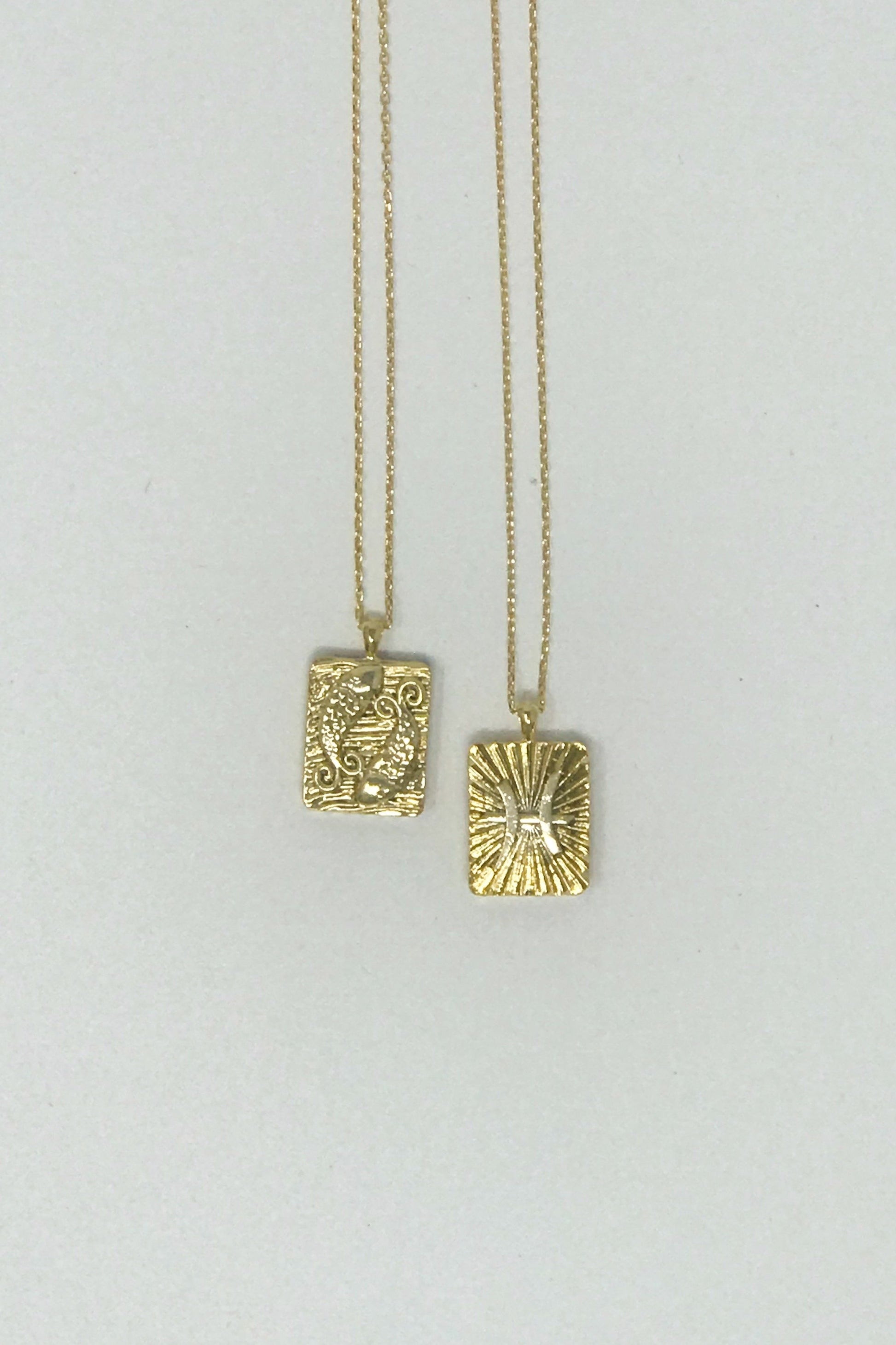 Beautiful and elegant reversible gold pendant with zodiac constellation signs. Can be worn on both sides. Available in 12 zodiac signs. Also available in prepack. Great personalized Gift for any event, Birthdays and Holidays.
