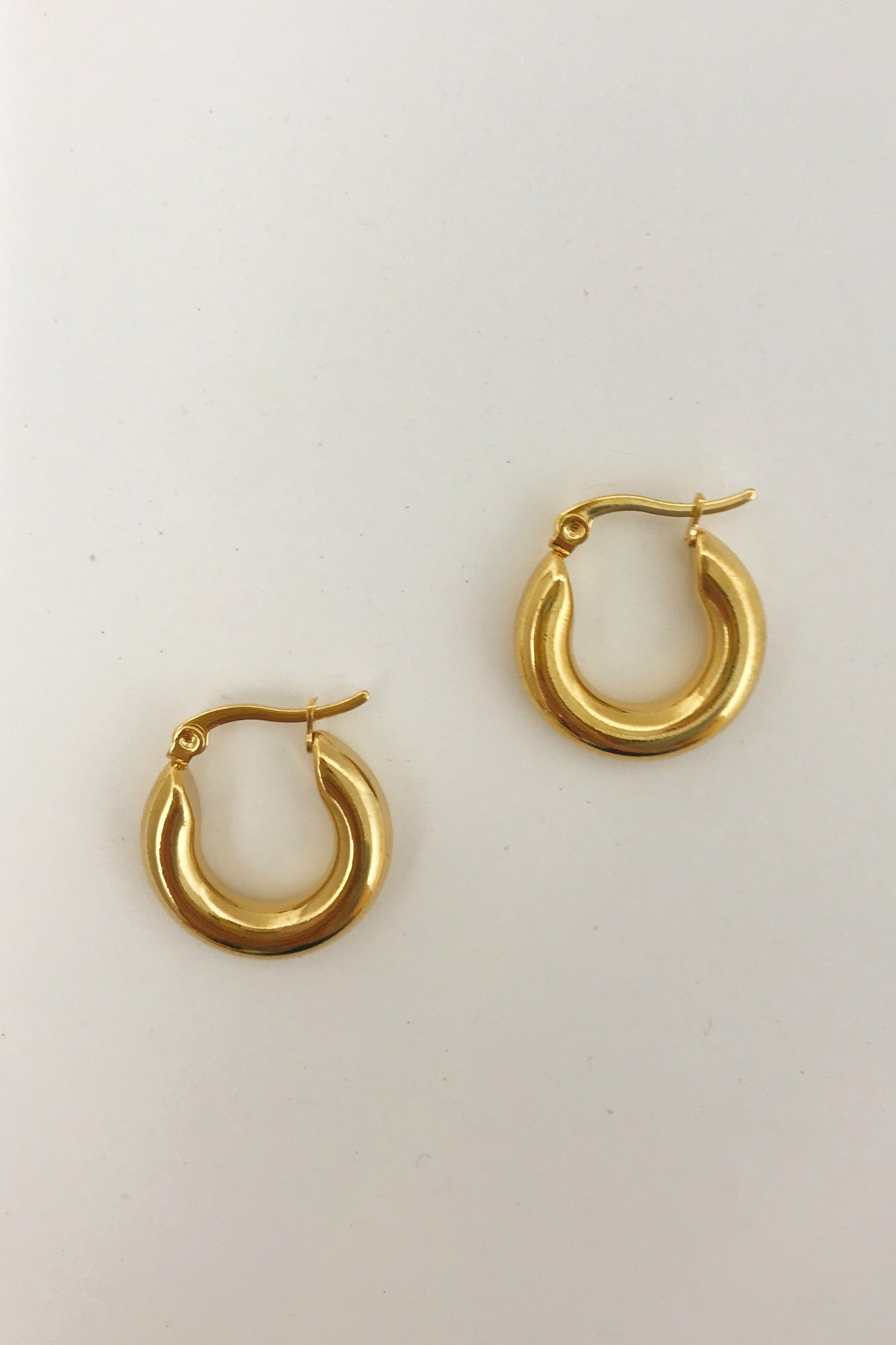 Stainless steel, 18 K gold plated. Great quality that will last long with no tarnish