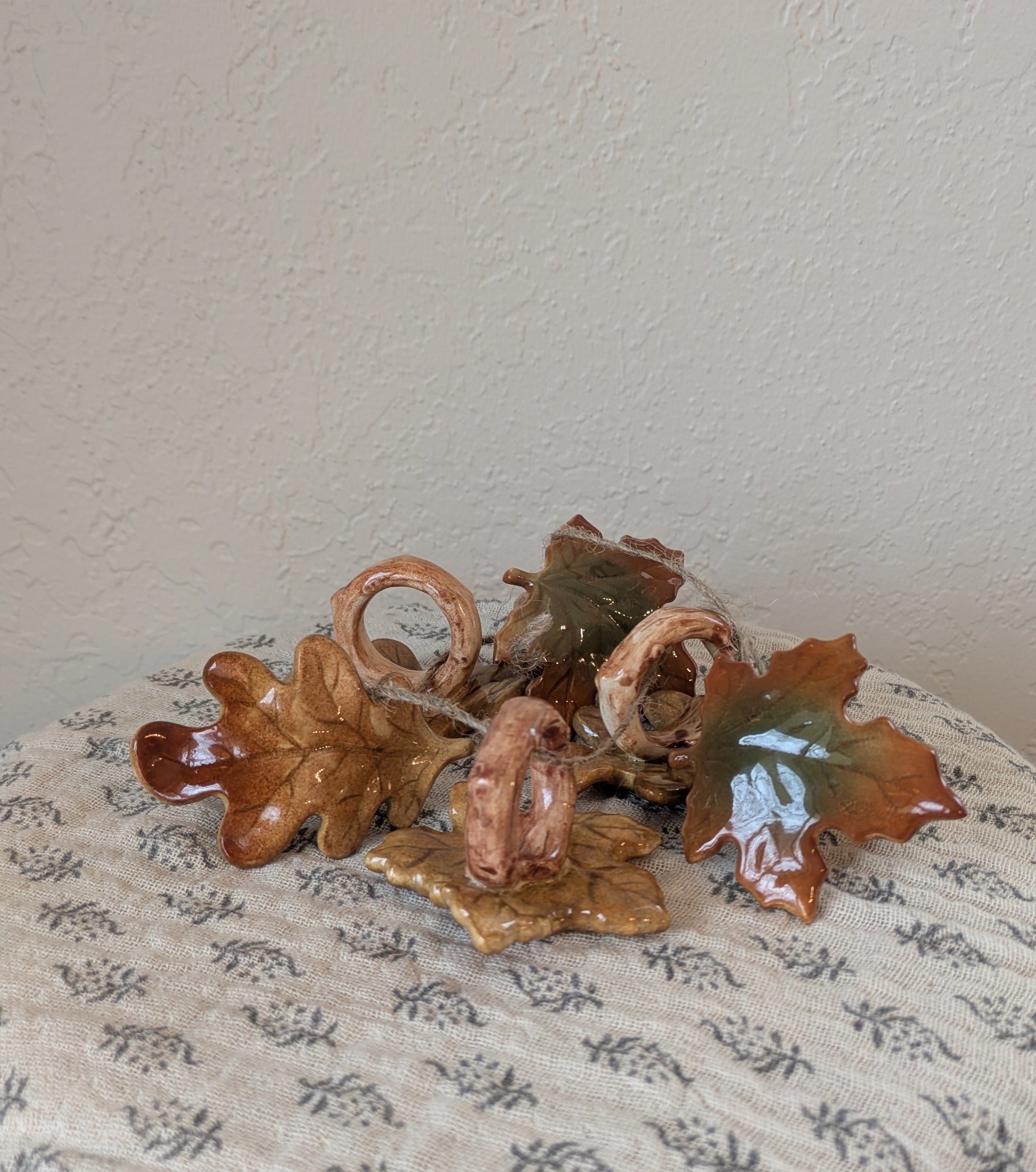 - Handmade note: Variations in glaze colors on maple leaves