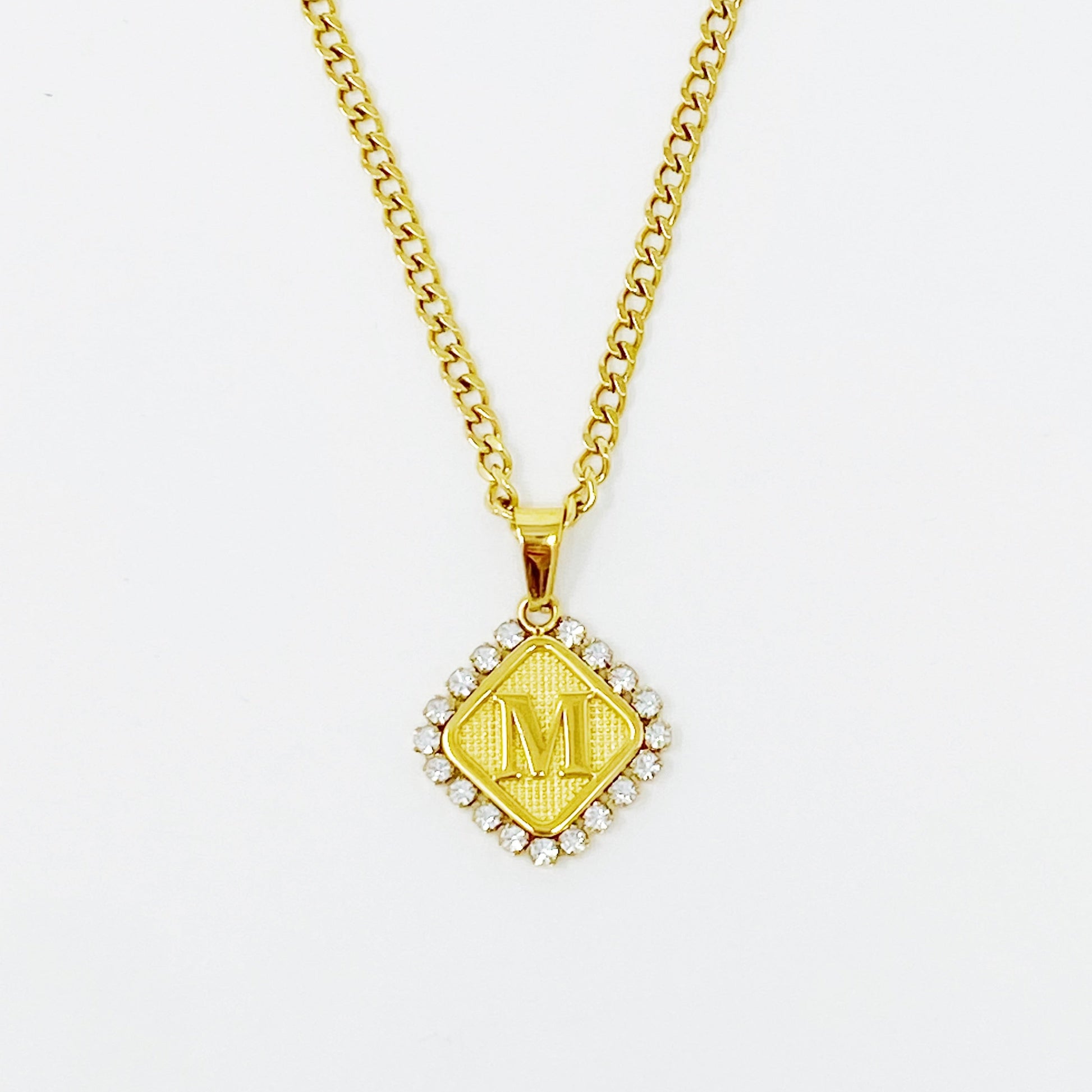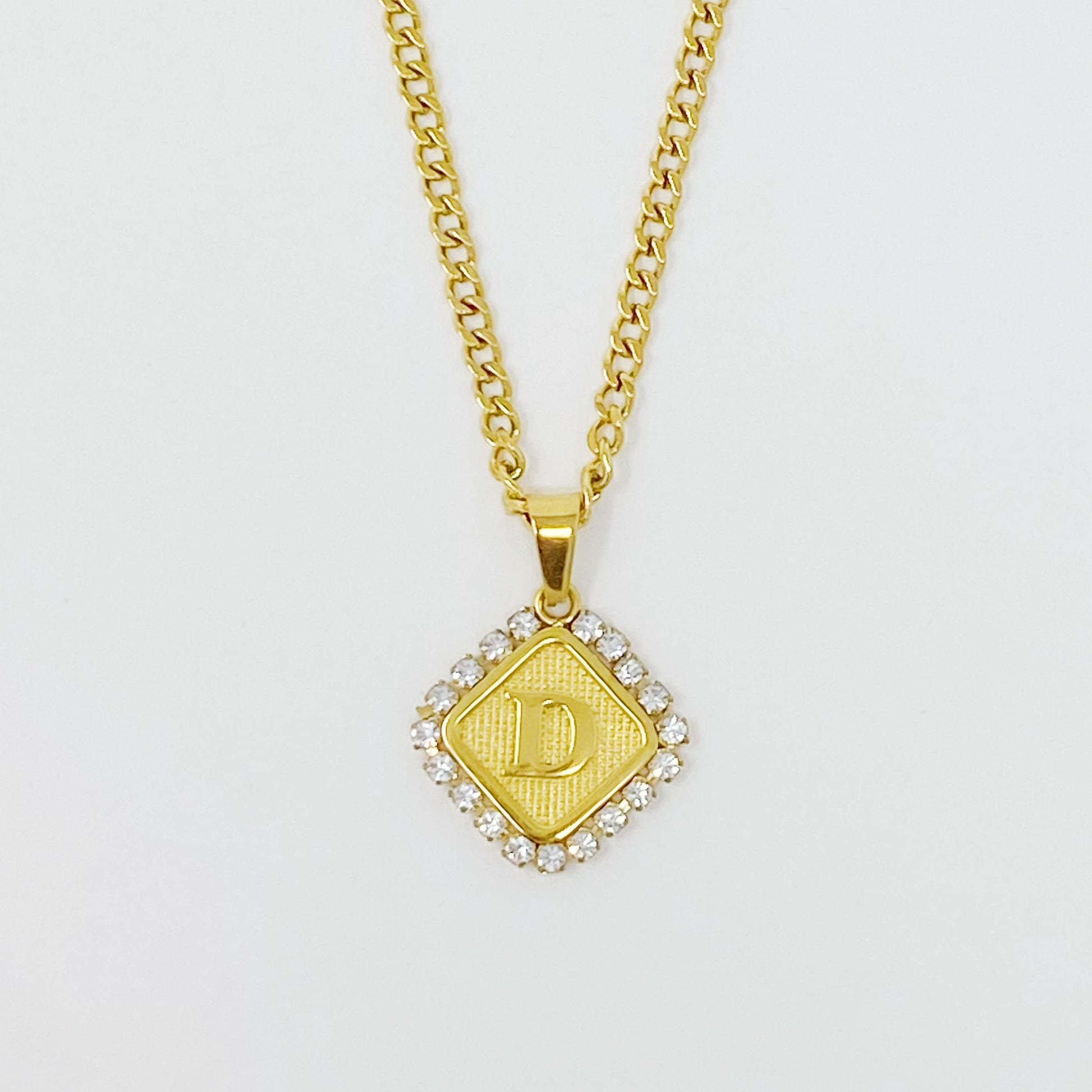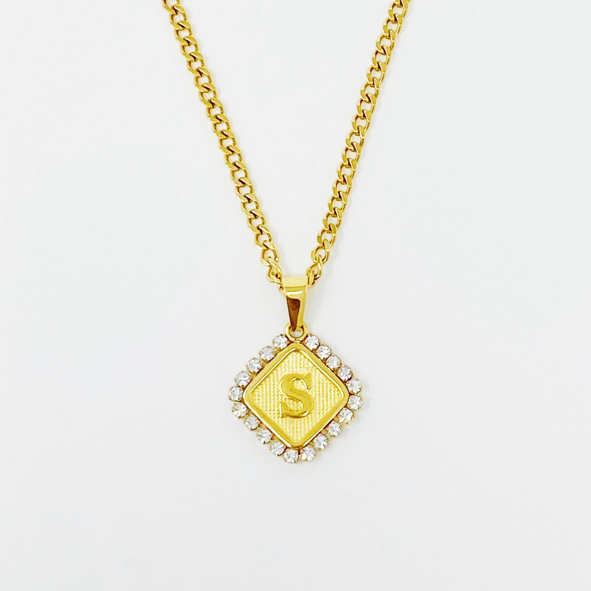 Stylish slim cuban chain and initial charm with cubic zarconia set all around. Excellent on details, tarnish free stainless steel with high quality plating.