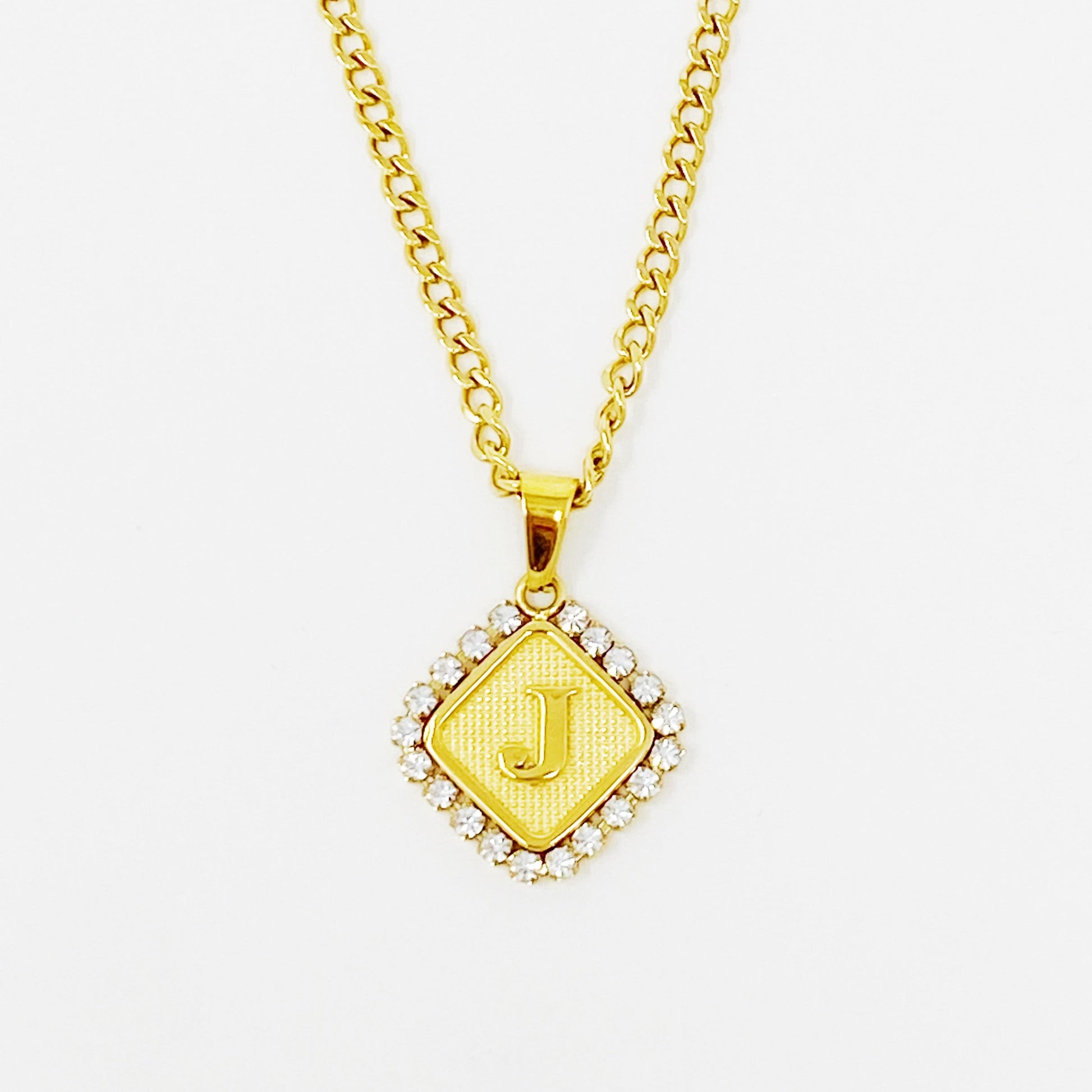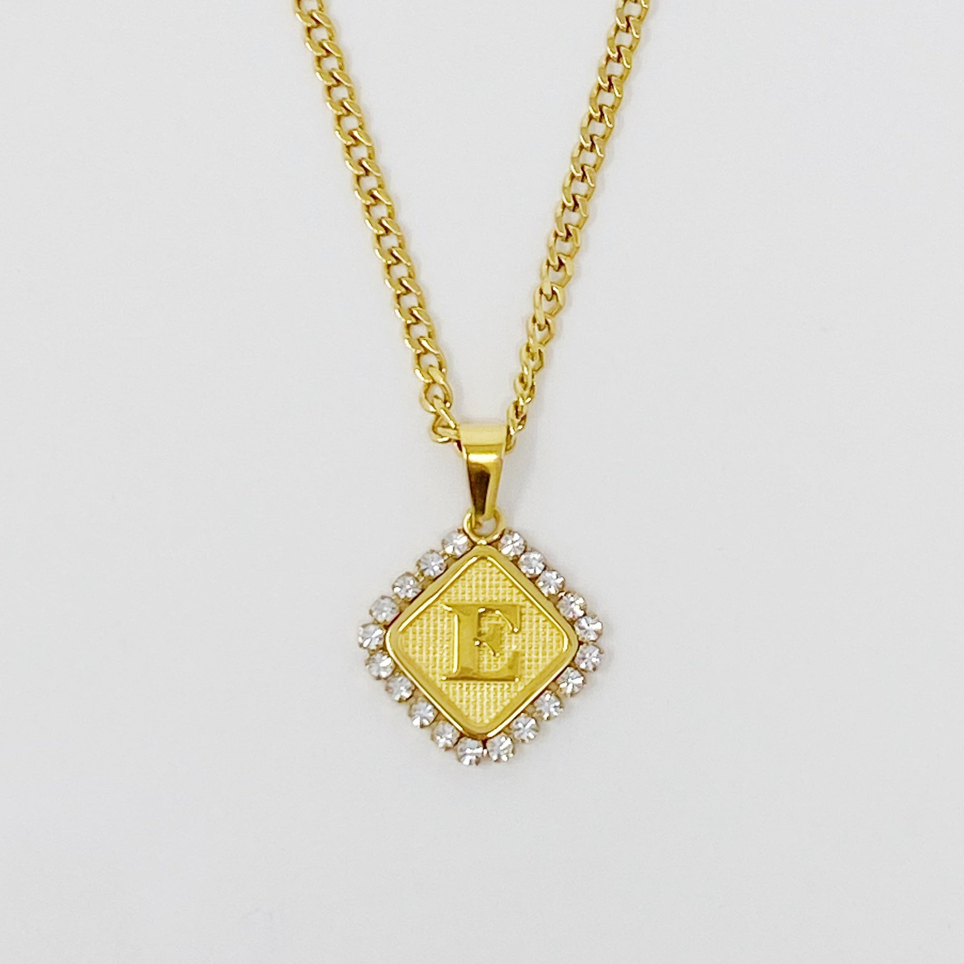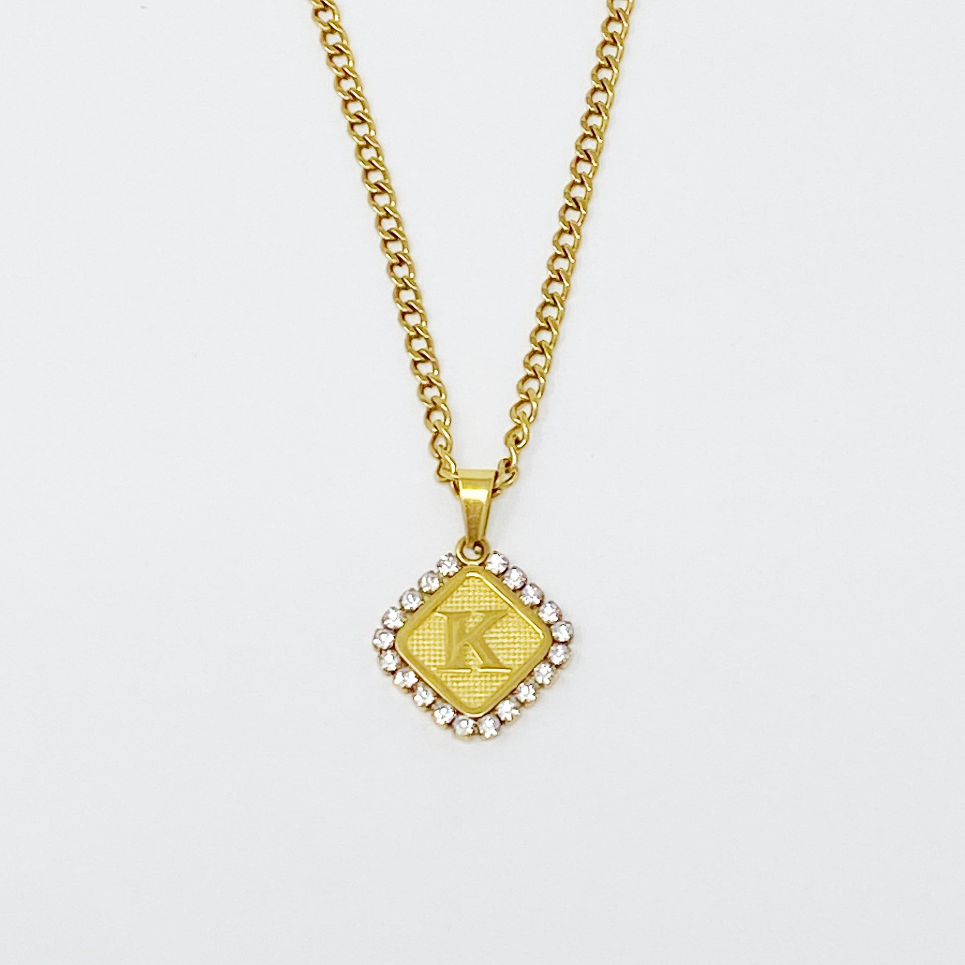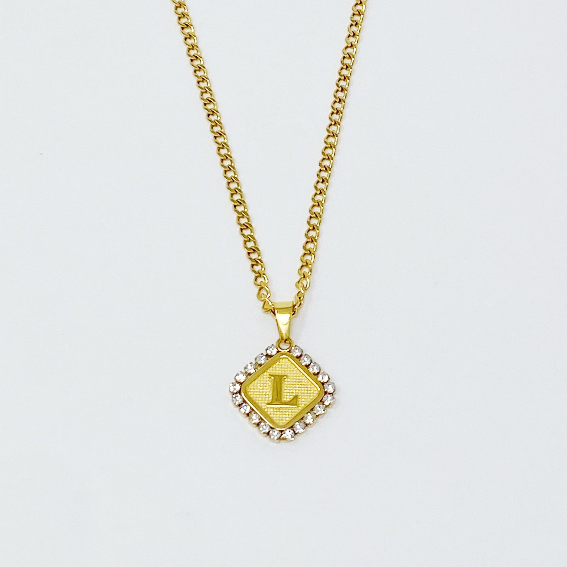 Stylish slim cuban chain and initial charm with cubic zarconia set all around. Excellent on details, tarnish free stainless steel with high quality plating.