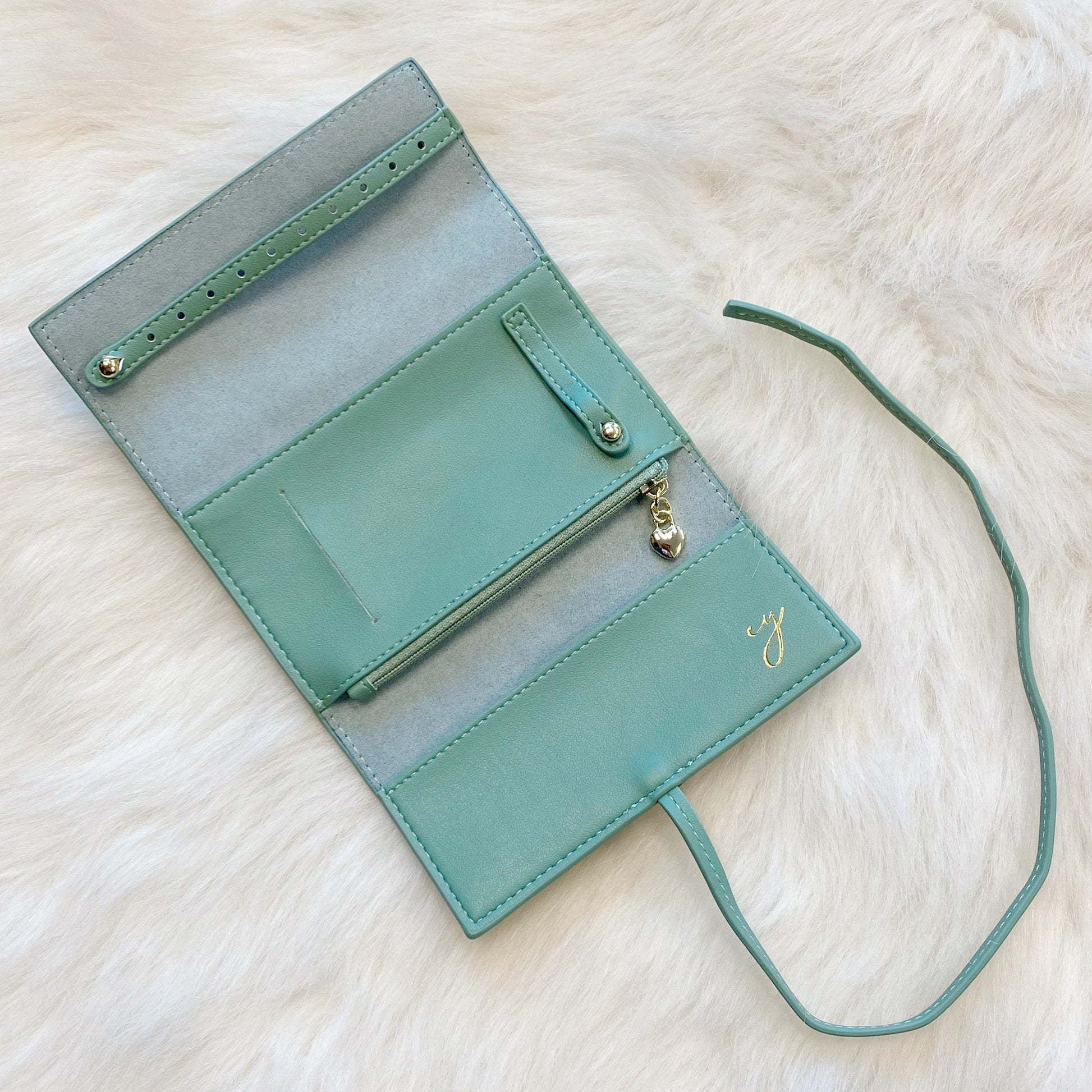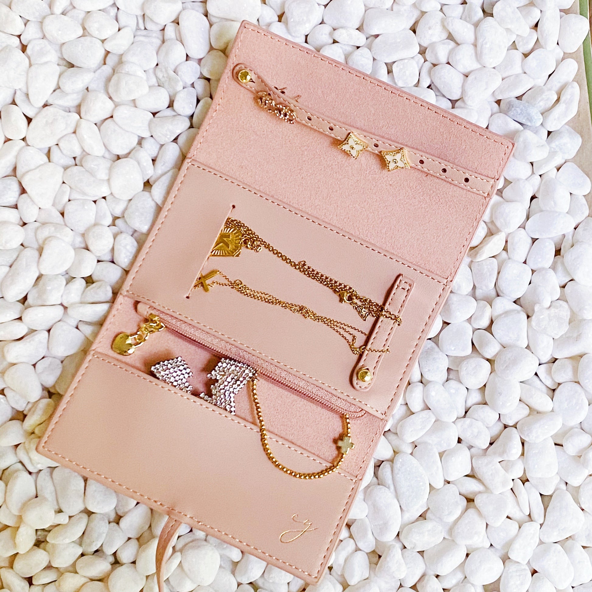 All in one and super handy jewelry roll that keeps jewelry safe and organized anywhere you go, in your luggage or purse. Small and functional for your daily jewelry needs.