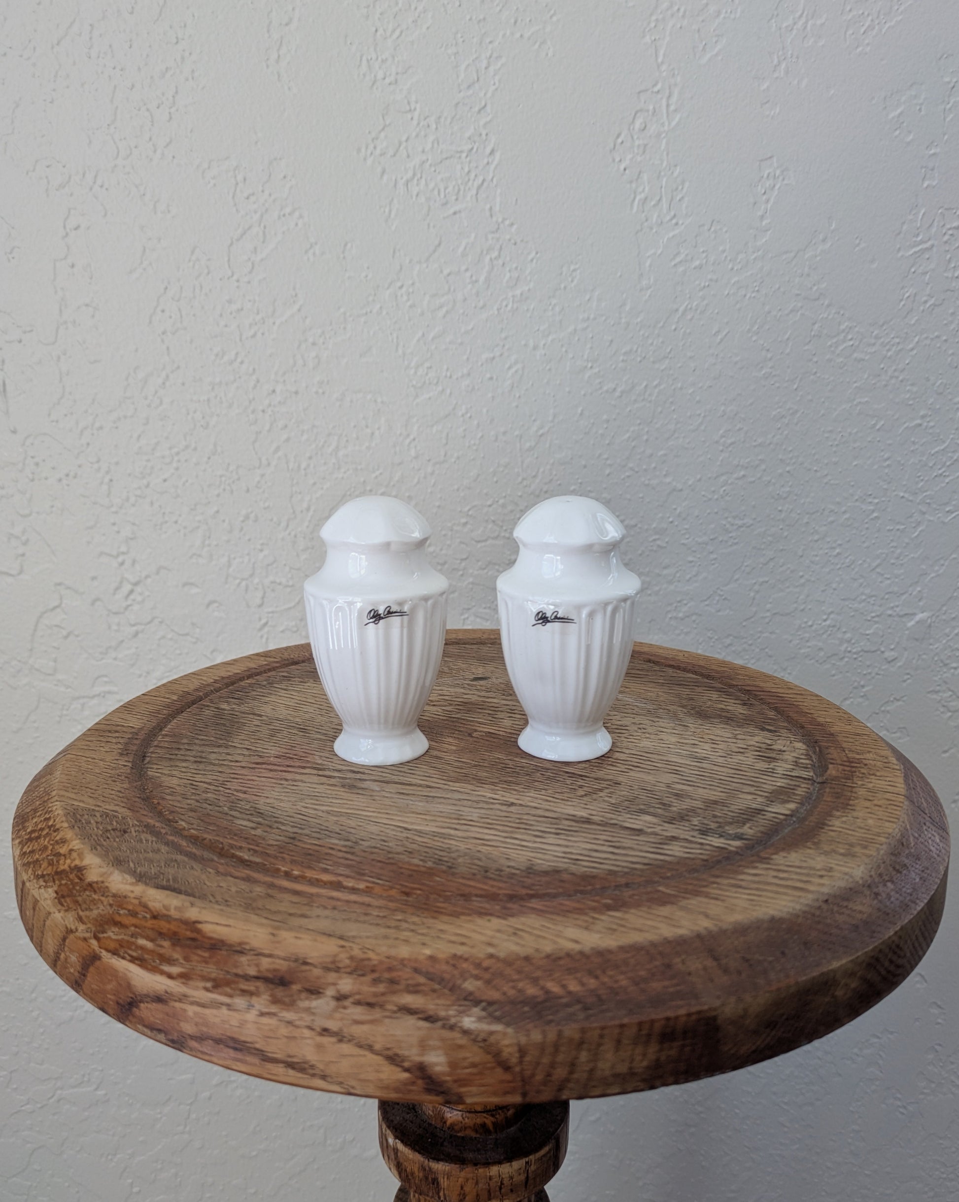 A pair of vintage Oleg Cassini white S & P shakers!